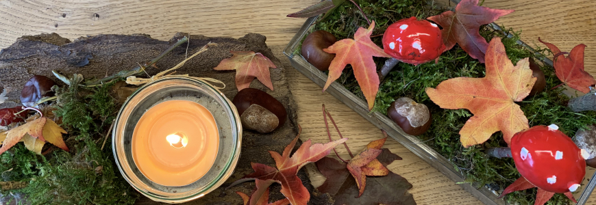 7. zum Schluss die Fliegenpilze draufstecken (eventuell kleben mit der Heißklebepistole)