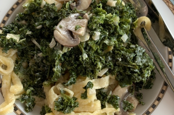 • Creme fraîche hinzufügen und mit Salz und Pfeffer würzen,