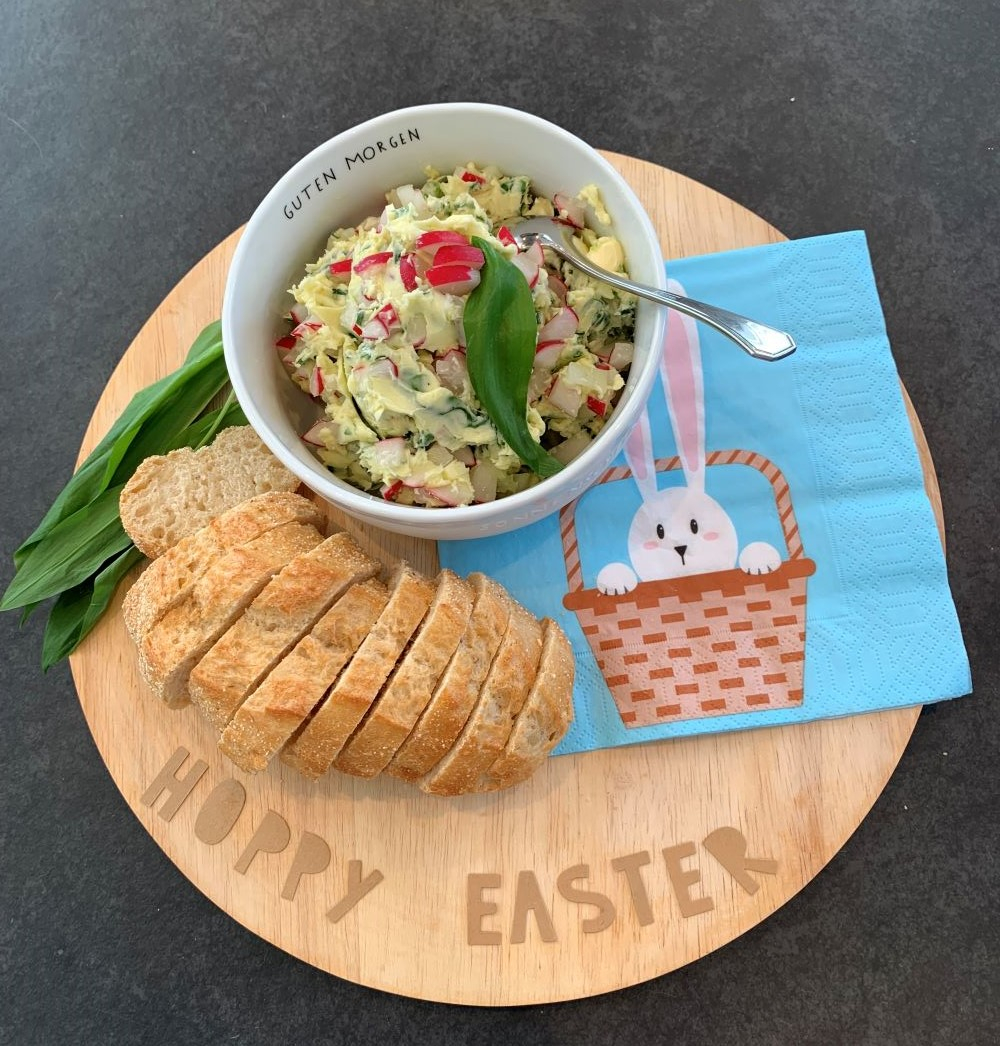 Radieschen putzen, waschen und fein würfeln. Bärlauch waschen, trocken schütteln oder tupfen und fein hacken. Butter mit Pfeffer, Salz und Paprikapulver würzen. Radieschen, Zitronenschale und Bärlauch untermengen. In einem Schälchen anrichten.