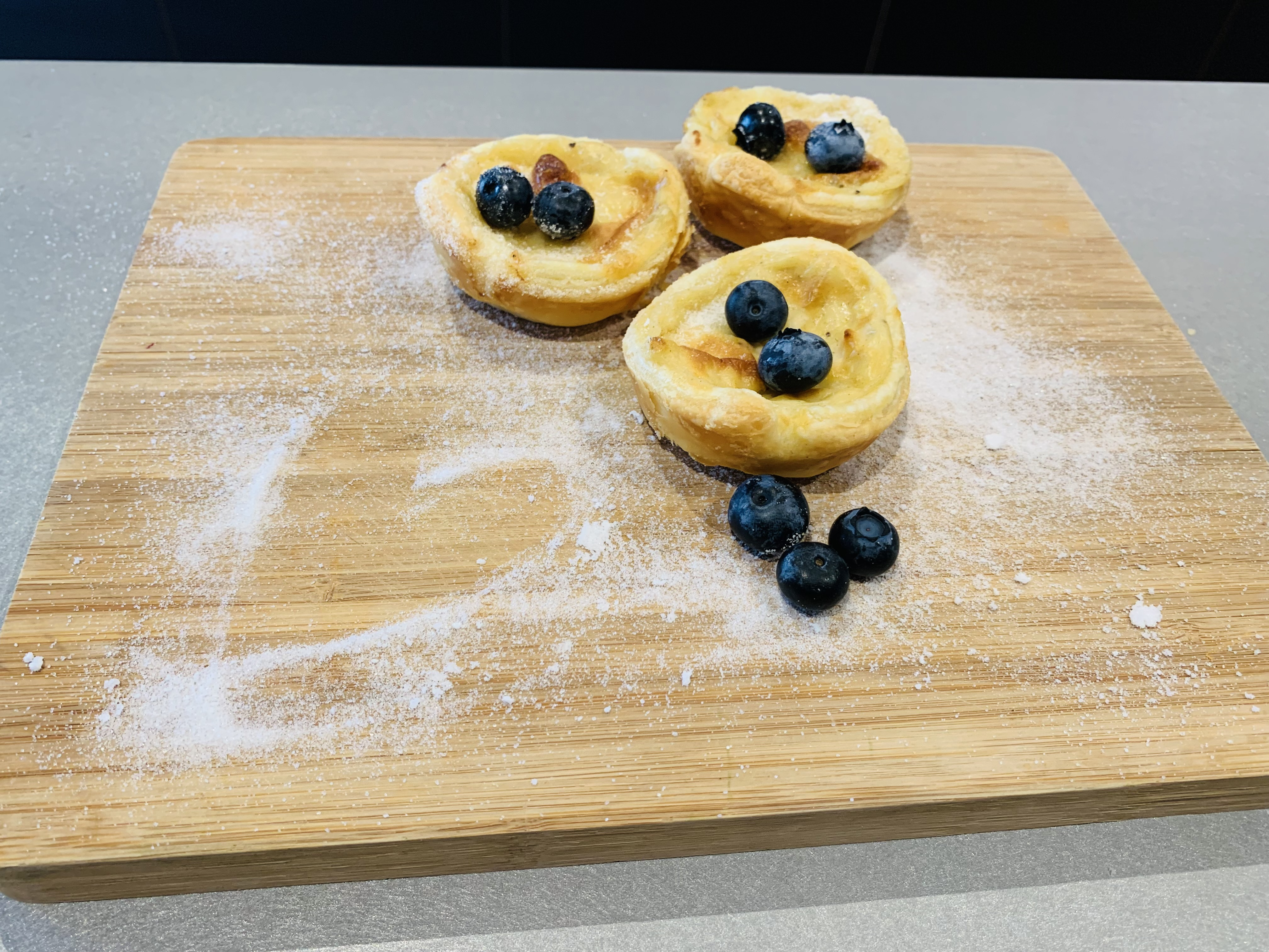 Blätterteig-Puddingtörtchen mit Heidelbeeren