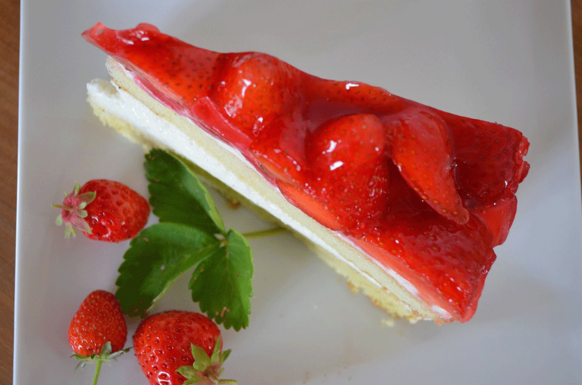 Der Tortenguss ist nicht unbedingt nötig, da die Beeren auf der Creme gut halten, aber das Schneiden der einzelnen Stücke ist schwieriger.