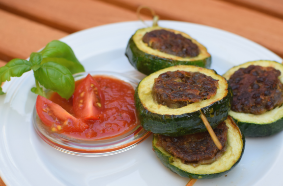 • Die vorbereiteten Champignonköpfe großzügig mit der Spinat-Ricotta-Mischung füllen.