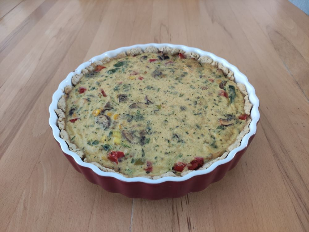 Dann das Gemüse darauf verteilen und die Seidentofu-Mischung gleichmäßig darüber verteilen. Weitere 20 Minuten im Ofen bei 200°C, danach weitere 15 Minuten bei 175°C backen.