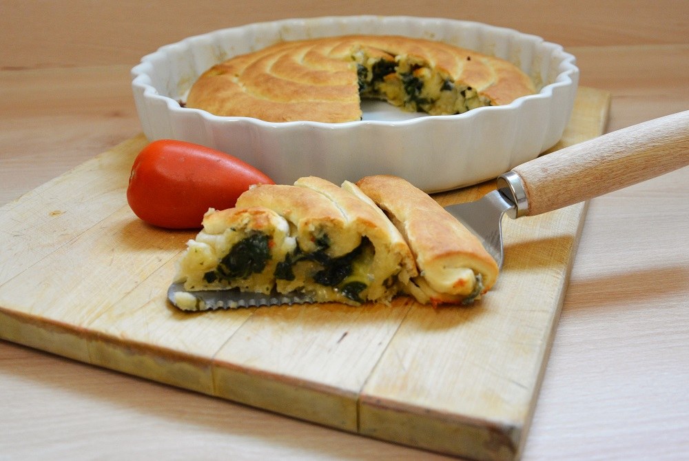 Gerollte Pizza mit Mangoldfüllung