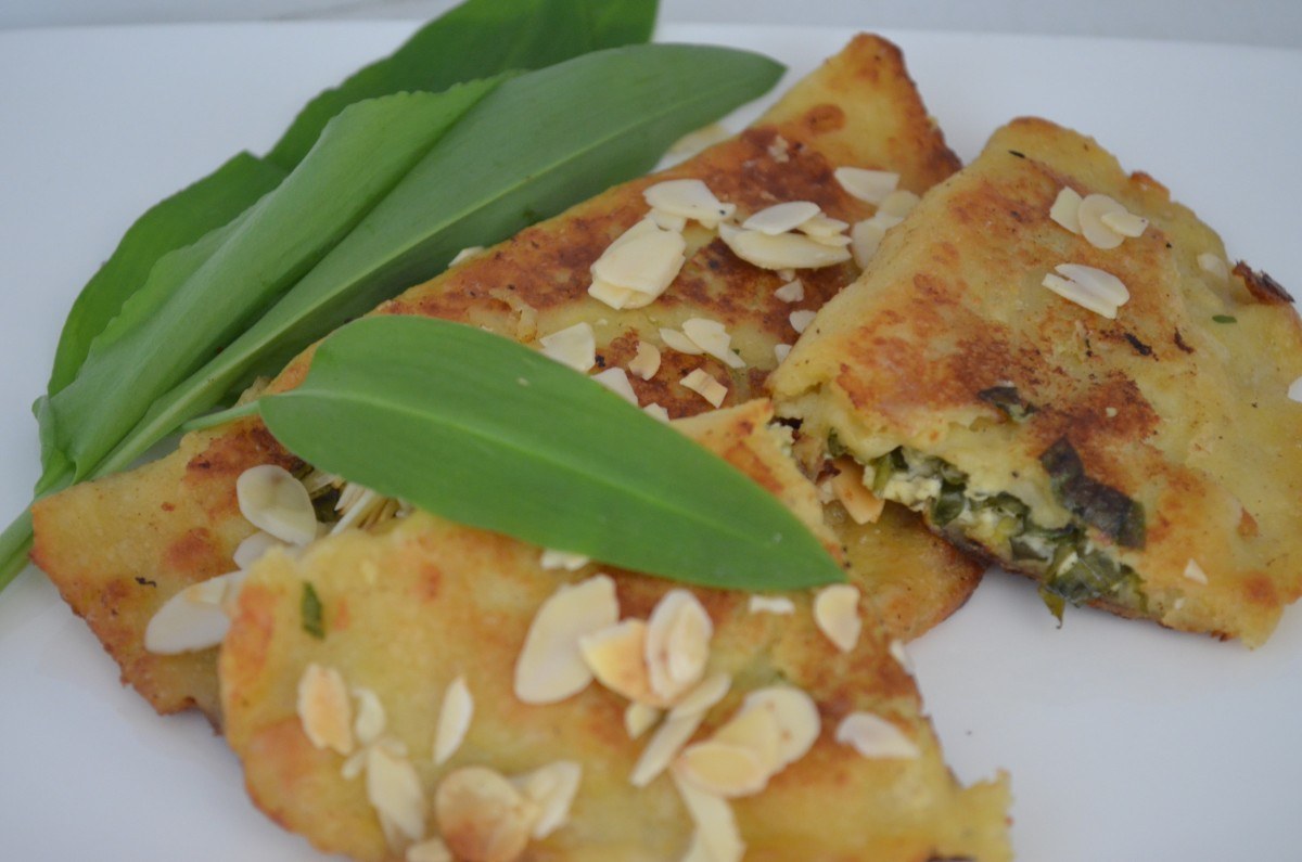 • übrige Butter schmelzen und die Kartoffeltaschen darin goldgelb braten,