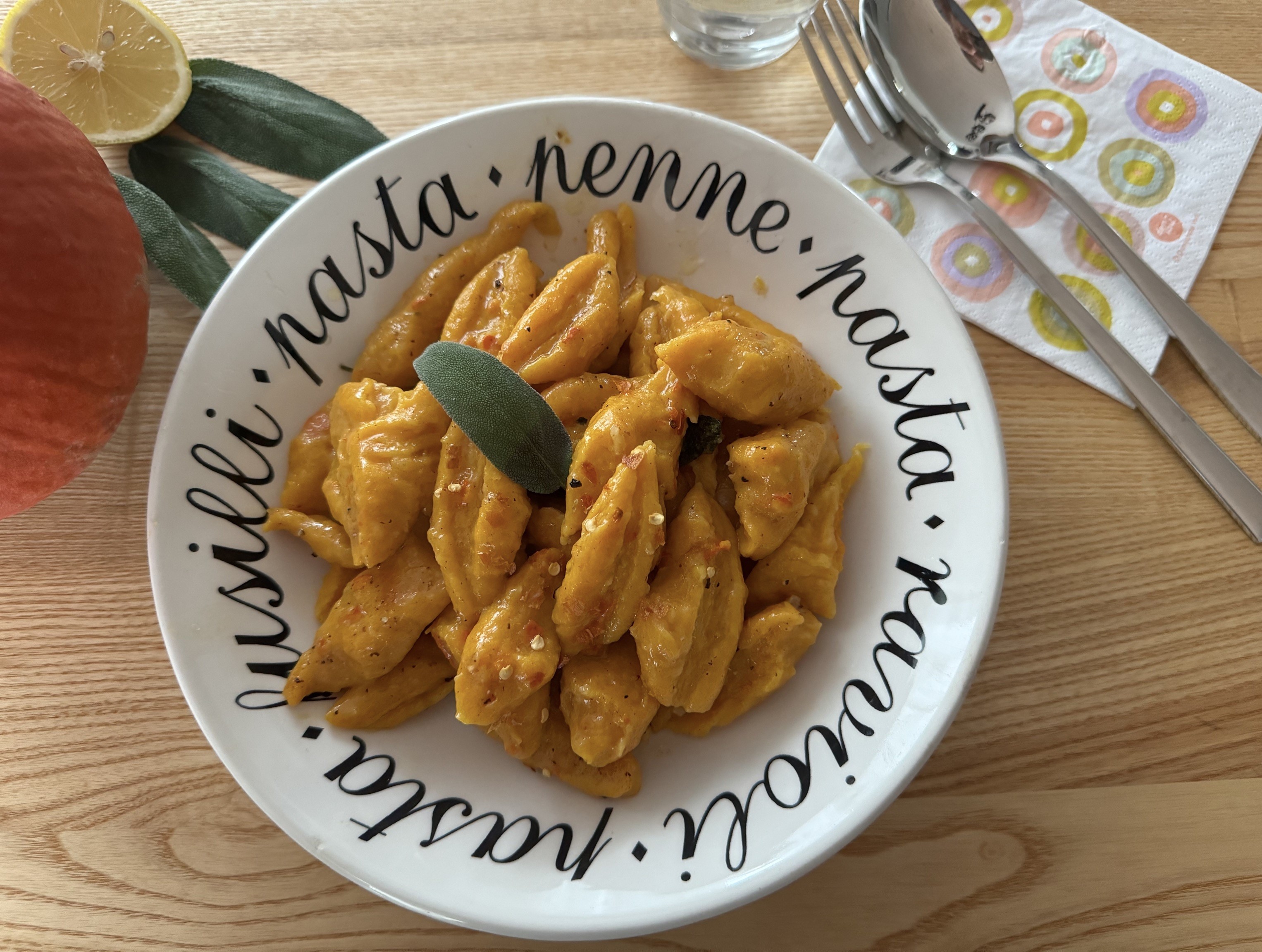 - Die Nudeln in der Salbeibutter schwenken und sofort servieren.
