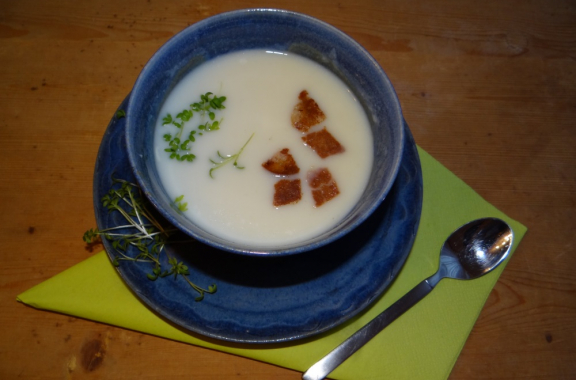 Alle Zutaten mit dem Pürierstab zu einem Brei verrühren.