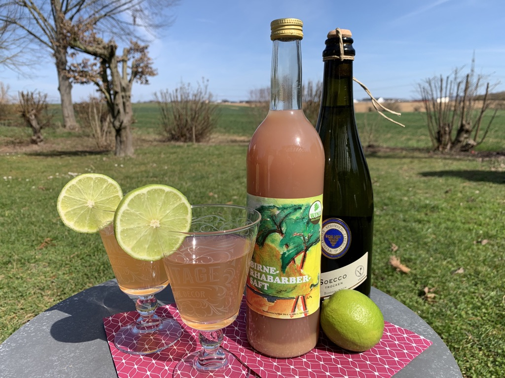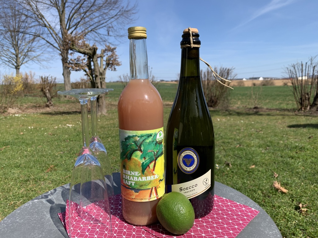 Birne-Rhabarber-Saft und Soecco kühl stellen. Gekühlten Soecco in Gläser füllen und nach Geschmack den Saft zugeben – je mehr, desto süßer. Limette halbieren und mit ein paar Spritzern Limettensaft das Getränk abrunden. Wer möchte kann noch ein paar Eiswürfel zugeben.