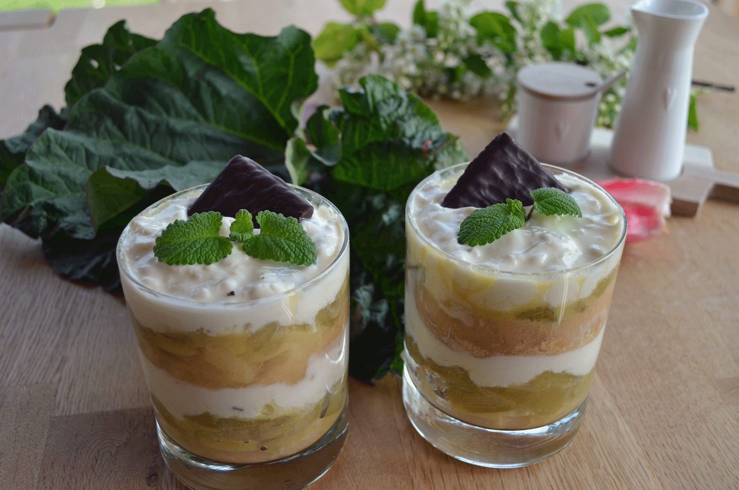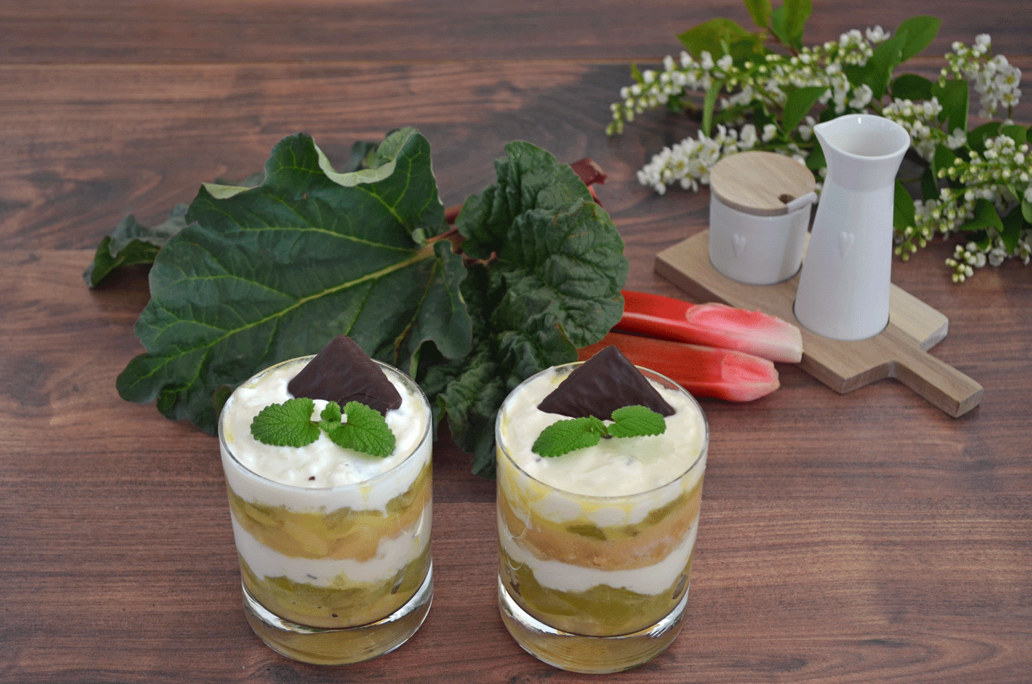 wieder eine Lage Löffelbiskuits, Rhabarber, und zum Schluss Frischkäse,