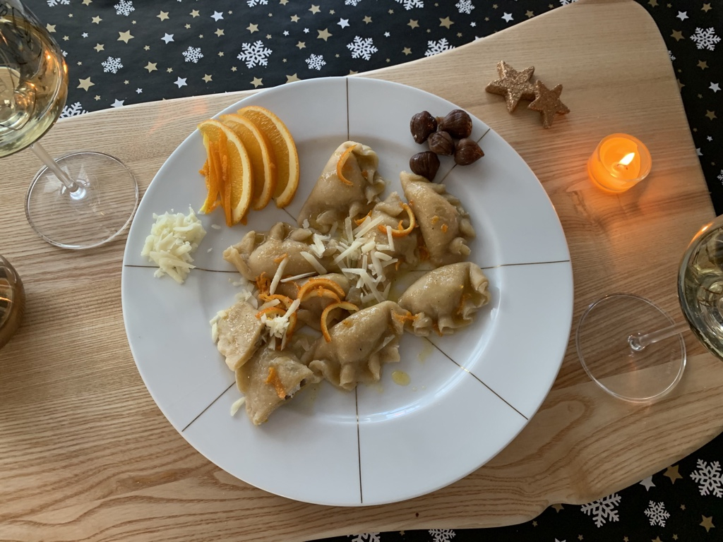 Teigtaschen mit Maronenfüllung an Orangenbutter