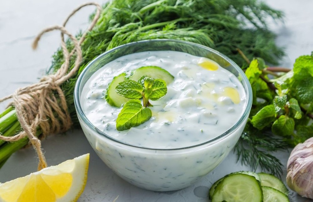 Nach Belieben frischen Dill und Minze unterrühren. Das verleiht dem Tzatziki noch mehr Frische und Aroma.