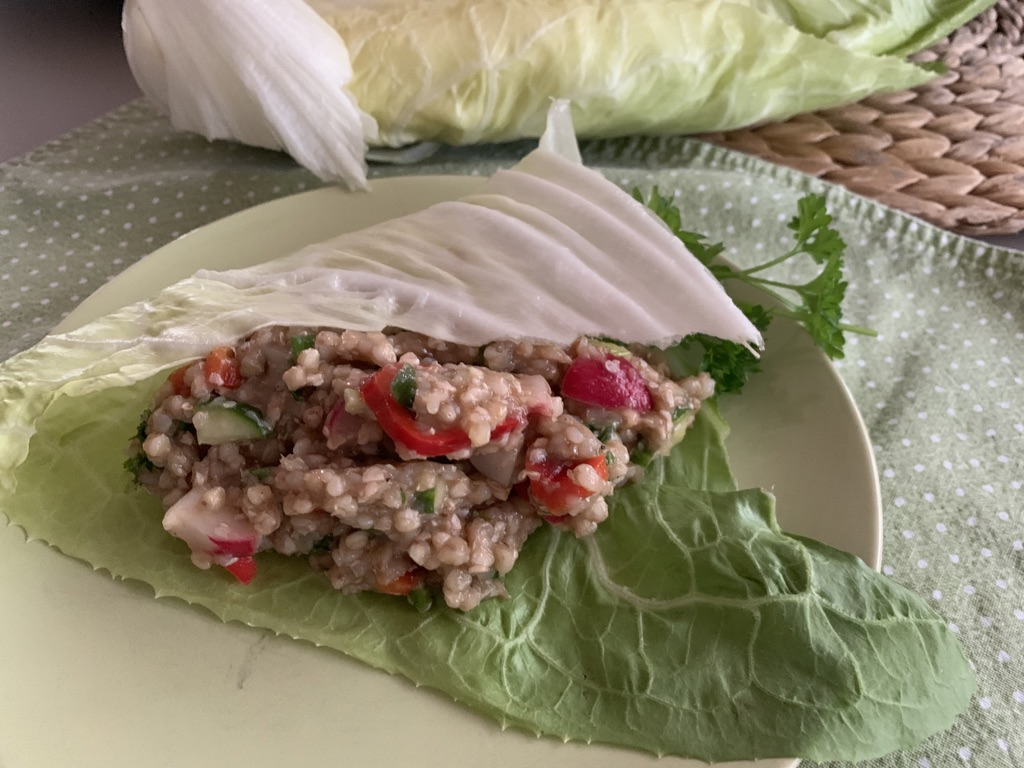 Die Gemüsebrühe wird mit dem Buchweizen kurz aufgekocht. Etwa 15 Minuten bei niedriger Hitze köcheln lassen, bis der Buchweizen bissfest ist. Währenddessen das Gemüse kleinschneiden. Den Buchweizen in ein Sieb geben und etwas abkühlen lassen. Den noch lauwarmen Buchweizen in eine Schüssel geben und das Olivenöl unterrühren. Das geschnittene Gemüse zugeben. Den Saft der Zitrone und ein wenig Abrieb ebenfalls zum Buchweizen geben. Agavendicksaft, Salz und Pfeffer untermischen. Kurz durchziehen lassen und noch zimmerwarm servieren.