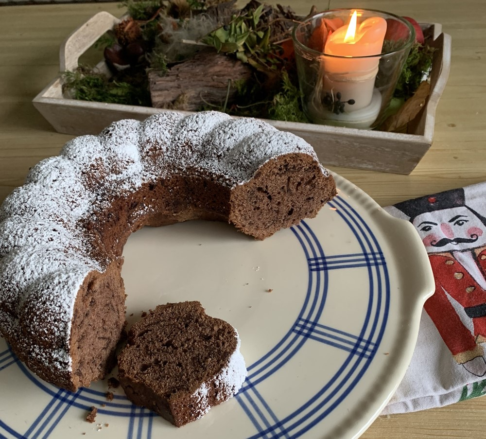 Teig in die Form füllen und im vorgeheizten Ofen ca. 50 Min. backen. Mit der Stäbchenprobe testen, ob der Kuchen durchgebacken ist. Kuchen ca. 15 Min. auskühlen lassen.