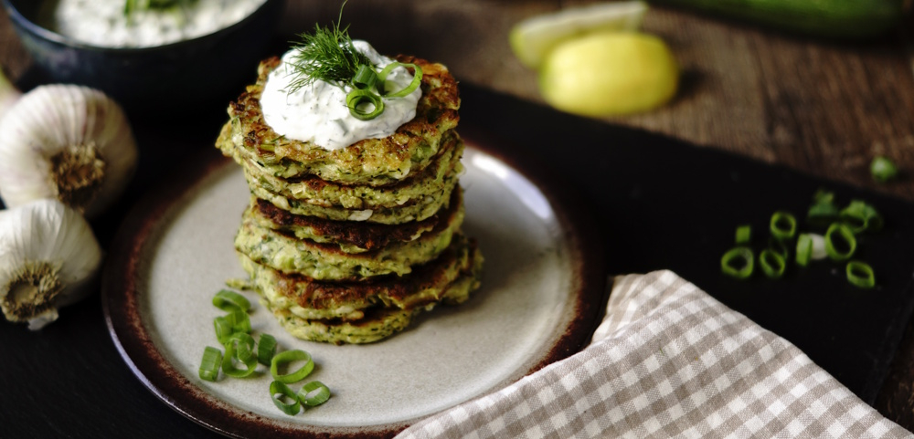Die Puffer zubereiten: dazu Zucchini auf der feinen Seite der Reibe reiben, in einem feinen Sieb so gut ausdrücken wie möglich. Je trockener die Raspel sind, desto besser gelingen die Puffer.