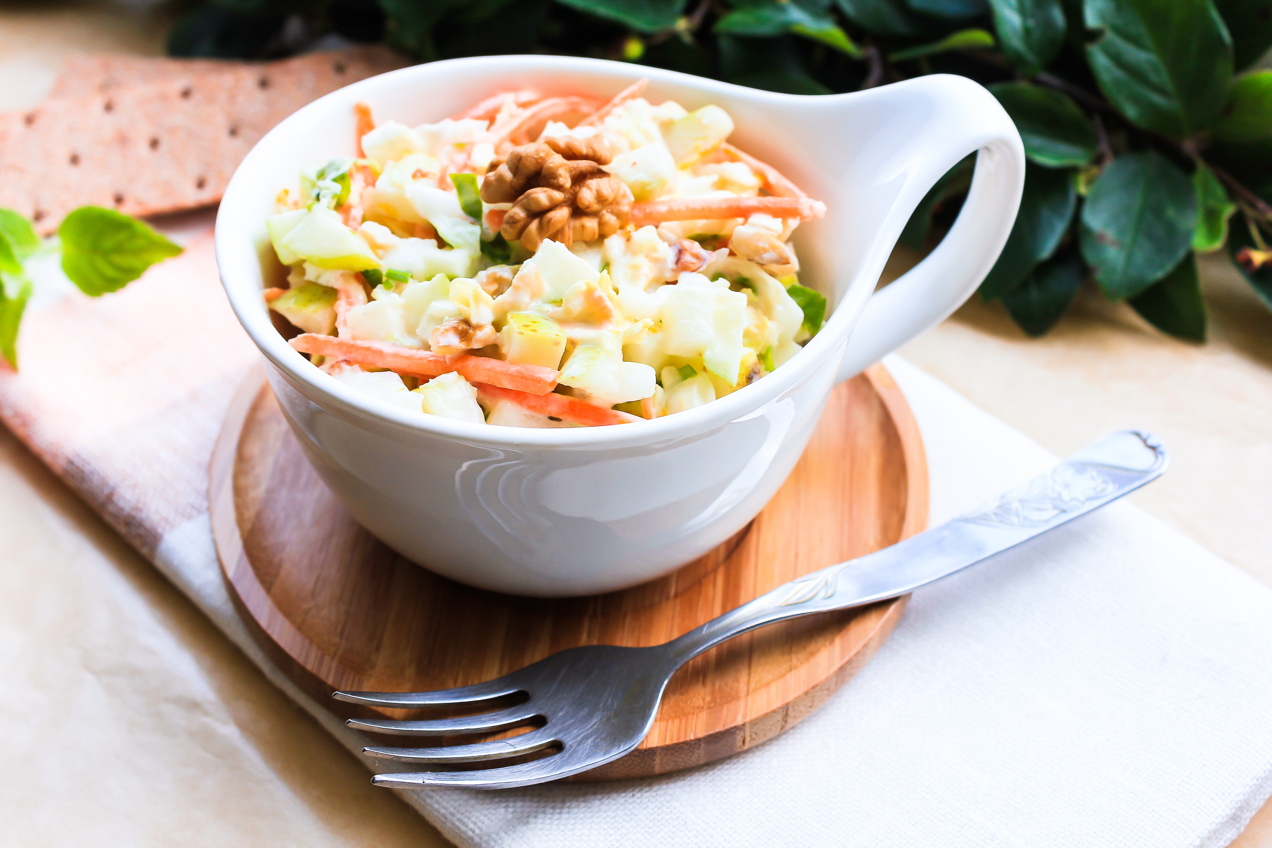 die Frühlingszwiebeln in feine Ringe schneiden und ebenfalls unter den Krautsalat mischen,