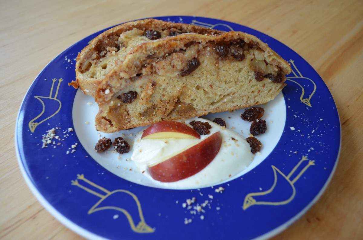 • das Eigelb mit ca. 1EL Milch verrühren und den Strudel damit einpinseln,