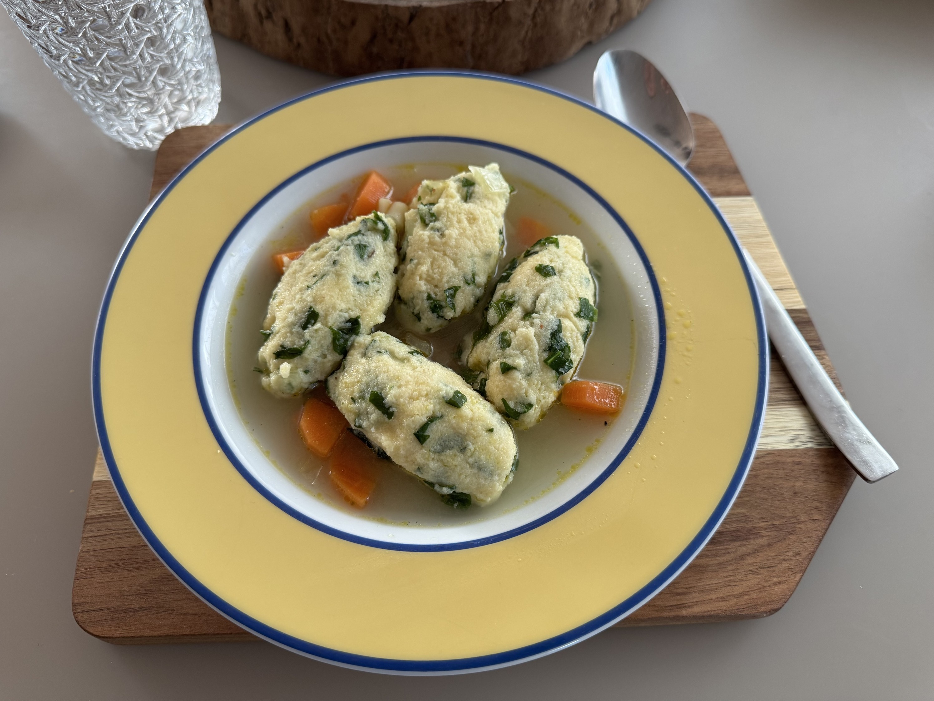 Die Bärlauch-Klößchen zusammen mit der Brühe heiß servieren. Guten Appetit!