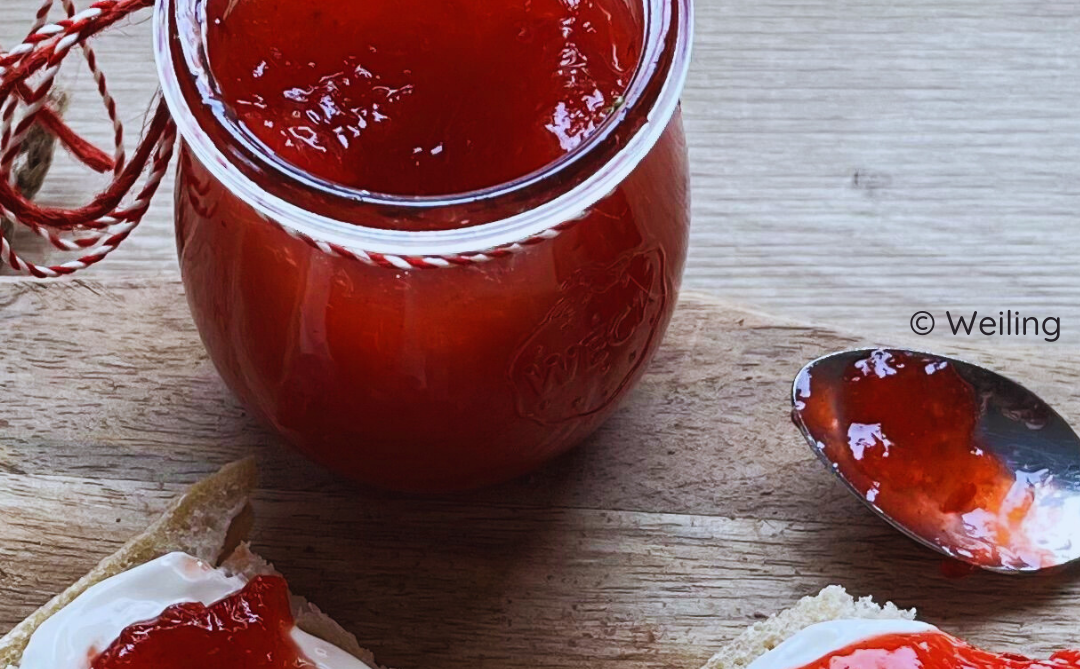In Twist- Off Gläser füllen, verschließen und auf dem Kopf stehend abkühlen lassen.