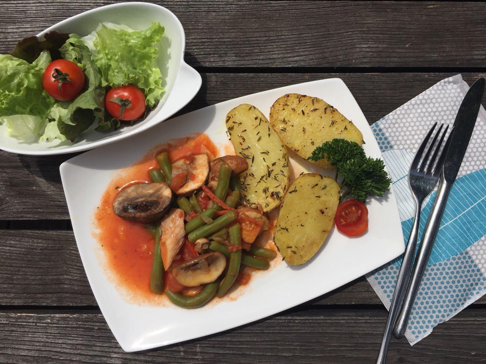 Bohnen-Pilzpfanne mit Neuen Kartoffeln