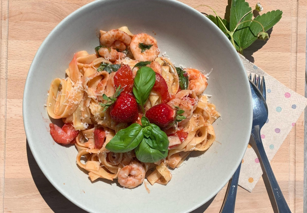 Erdbeer-Garnelen-Pasta