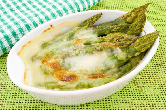 Grüner Spargel auf Tomatensugo - überbacken