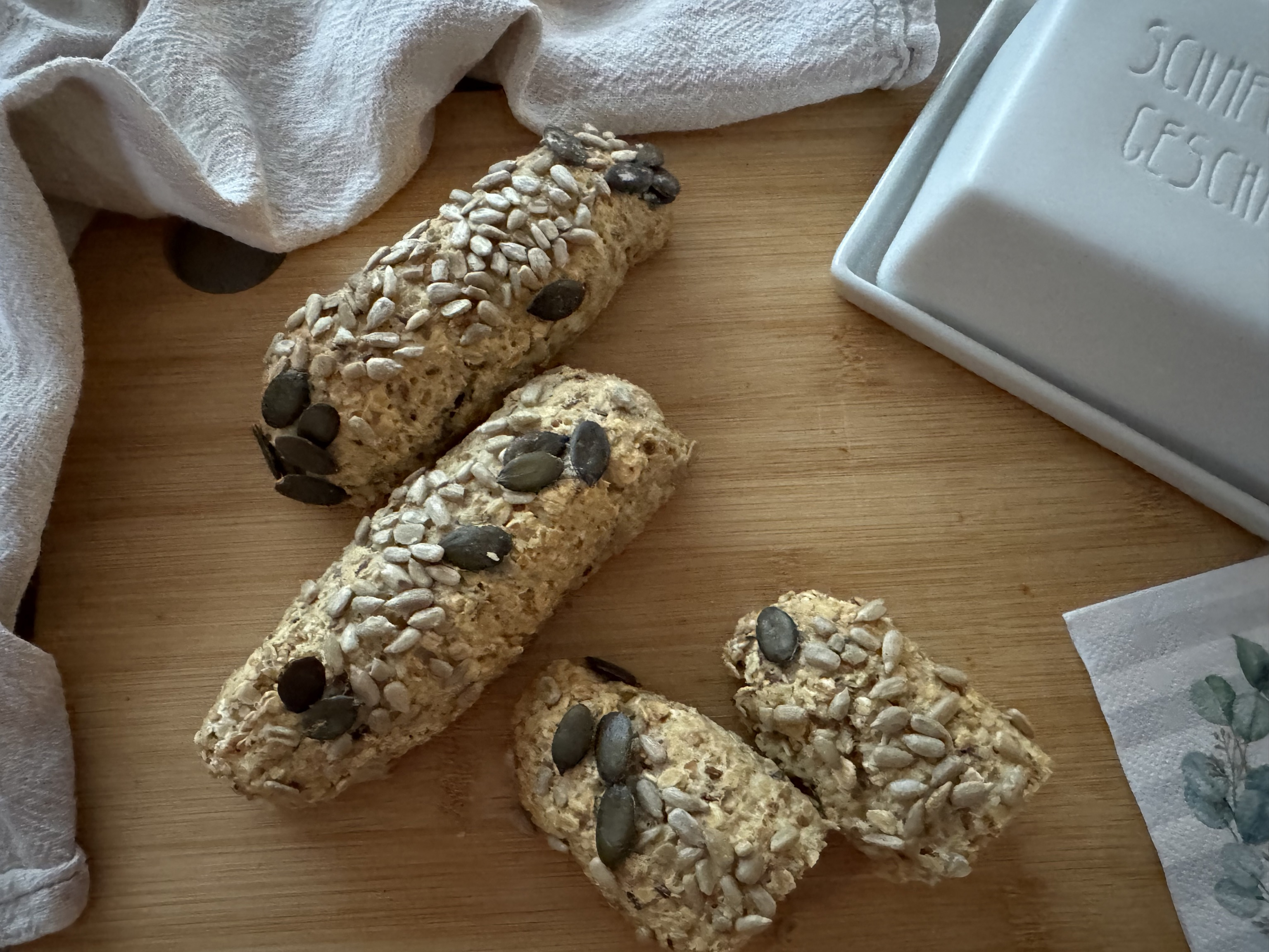 • Auf ein Backblech legen und im Backofen ca. 20 Minuten backen, bis die Stangen goldbraun sind.