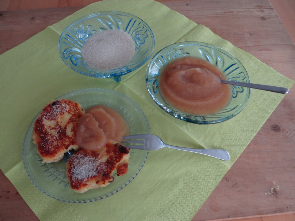 Mit Magerquark, Mehl, Ei und Zucker zu einem glatten Teig verarbeiten