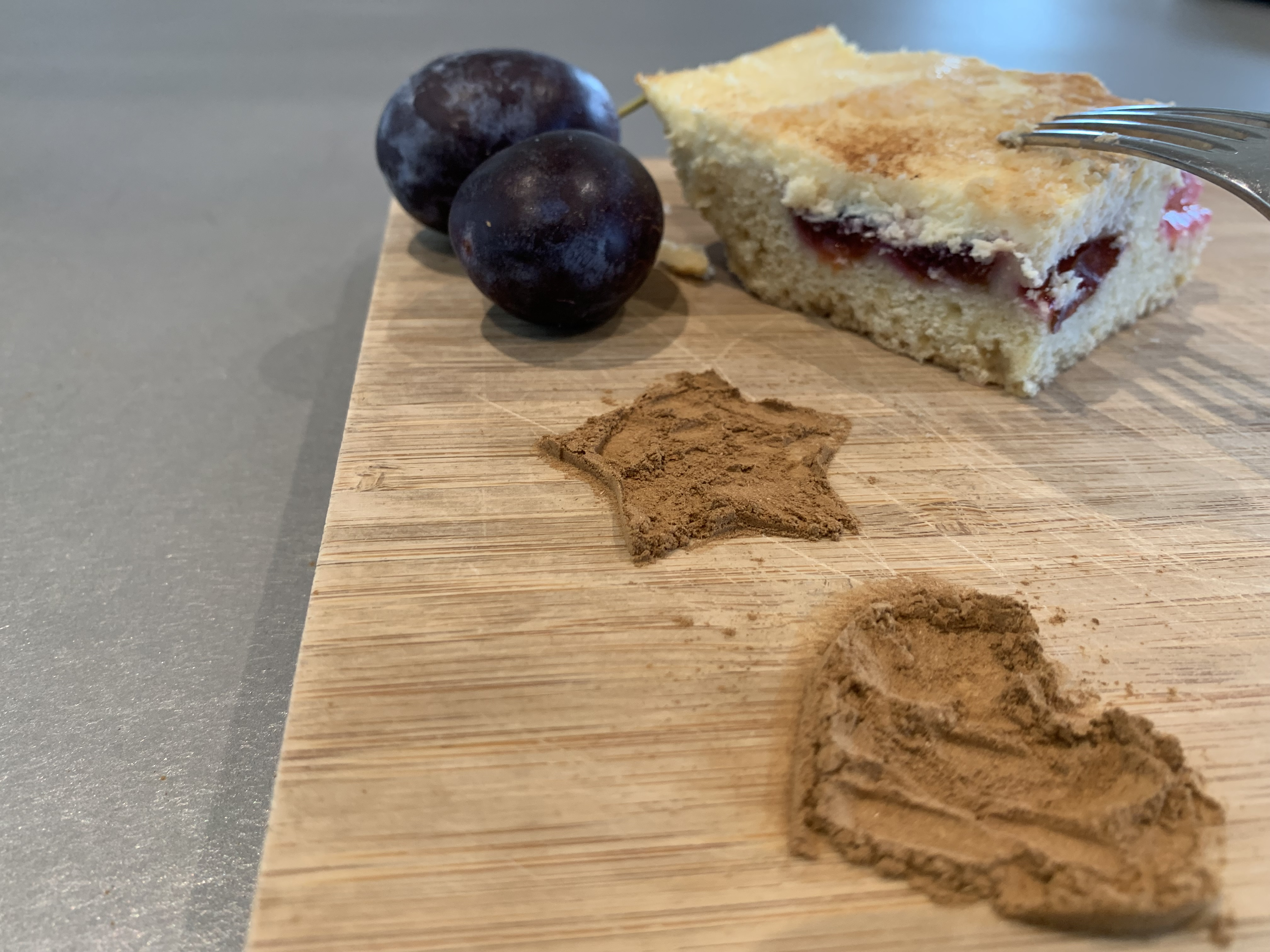 Zwetschgen-Schmand-Kuchen abkühlen lassen, wer mag mit Zimt bestreuen und dann servieren.