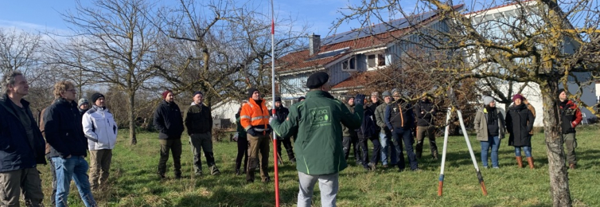 Anfang Februar war es wieder einmal Zeit für unseren beliebten Baumschnittkurs! Nicht nur die wärmende Wintersonne, sondern auch 26 interessierte Teilnehmer*innen haben unseren Hof besucht. Jürgen Winkler gab viele Tipps und Tricks über das Schneiden von Sträuchern und Bäumen unterschiedlicher Art wie Kern- oder Steinobstbäume. Tatkräftig zeigte er an verschieden Beispielen, an welcher Stelle die Säge oder Schere am Sinnvollsten angesetzt werden sollte.