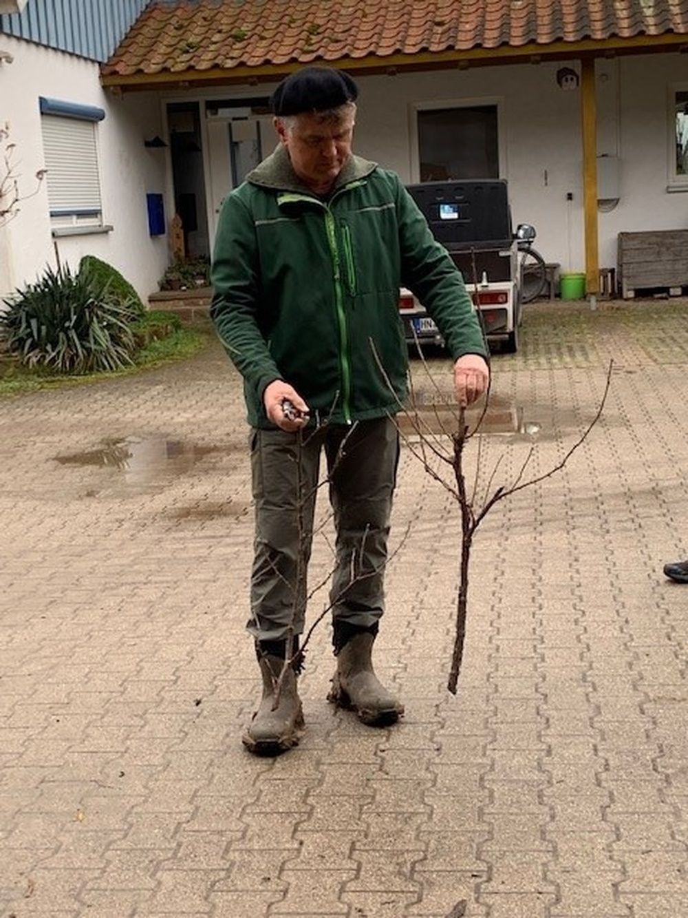Trotz des bewölkten Himmels nahmen 24 begeisterte Teilnehmer*innen an unserem Kurs teil, um von unserem Experten Jürgen Winkler wertvolle Tipps für die Baumpflege zu erhalten. Die Begeisterung für die Pflege des eigenen Gartens, des Baumstücks oder der Streuobstwiese war spürbar. Wir starteten mit einer theoretischen Einführung, diskutierten über die Unterschiede beim Schnitt von Stein- und Kernobstbäumen sowie über ein- und zweijährige Triebe und deren Auswirkungen auf die Fruchtbildung im Erntejahr. Einige Bäume wurden begutachtet und anhand von Beispielen gezeigt, worauf geachtet werden sollte. Manchmal lieber einen mutigen Schnitt anstatt immer wieder nur schnippeln, betonte Jürgen Winkler. Zum Abschluss genossen wir eine leckere Verkostung mit belegten Brötchen, Kuchen, Kaffee und Getränken in geselliger Runde, während weitere Fragen beantwortet wurden.
