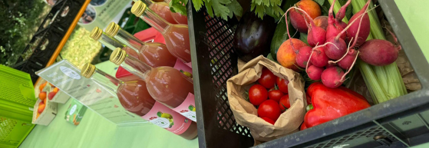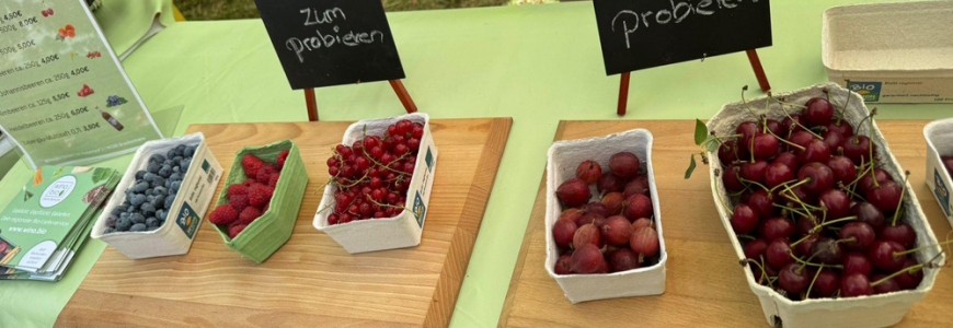 Wir durften uns auf der Bio-Genießerstraße präsentieren – einer Initiative der Bio-Musterregion Heilbronn Land. Dort haben wir unser frisch geerntetes Bio-Obst aus eigenem Anbau sowie unser komplettes Vollsortiment an Bio-Produkten vorgestellt und direkt zum Probieren und Kaufen angeboten. Viele Besucher*innen nutzten die Gelegenheit, mehr über unsere Biokiste zu erfahren.