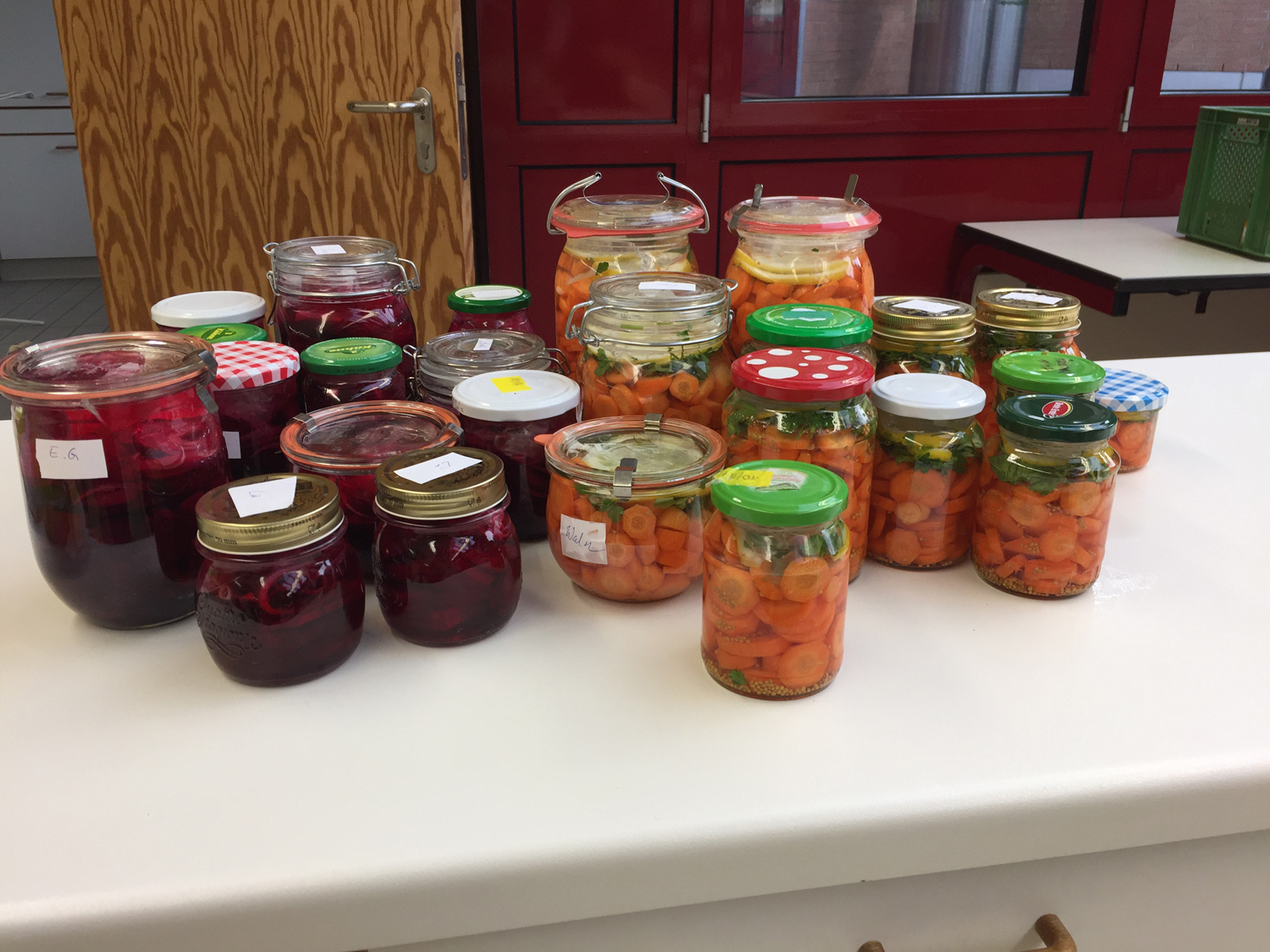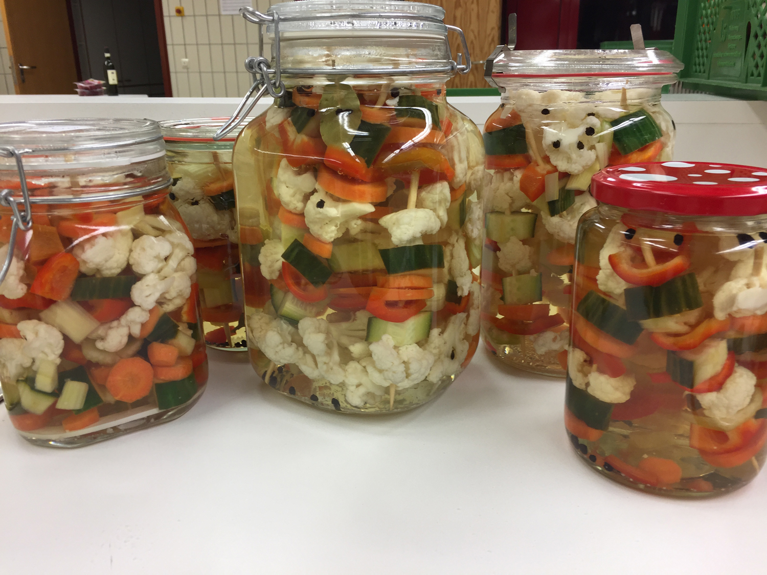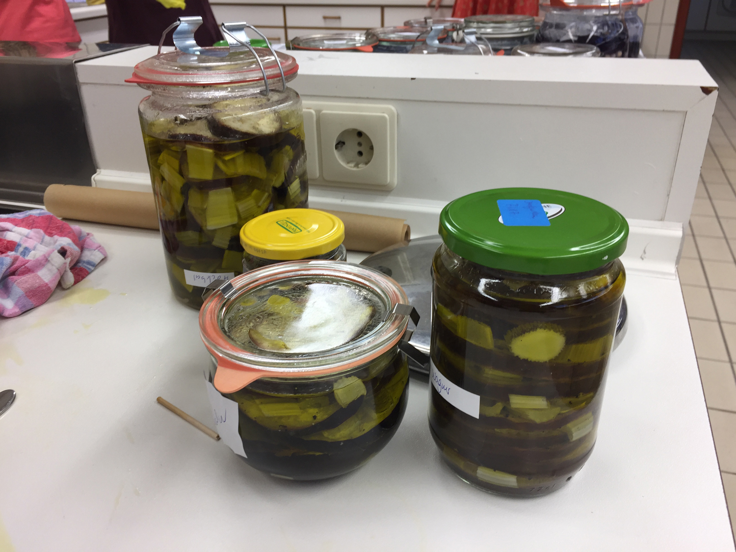 Es wurde sauer und in Öl eingelegt, eingekocht und in Salzlake Gemüse zum Fermentieren angesetzt – wir sind gespannt, in den Gläsern beginnt es schon zu blubbern.