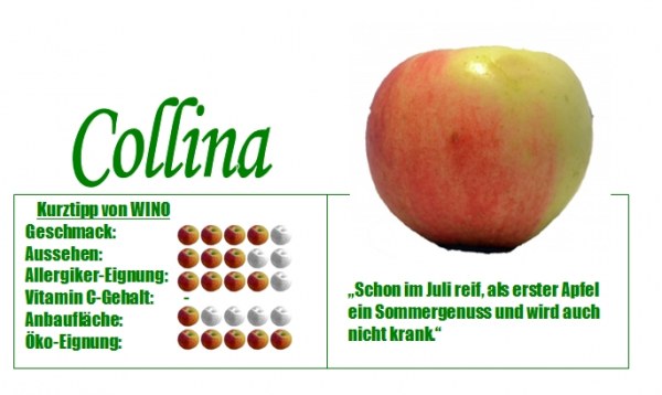 Sonstiges: Besonders bei Apfelallergikern sehr beliebt. Wird in den Niederlanden sogar mit dem Zusatz „allergenarmer Apfel“ vermarktet. Außerdem resistent gegen Pilzkrankheiten, wie Schorf.