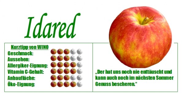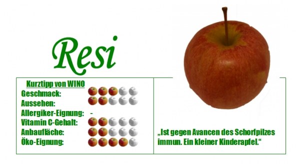 Sonstiges: Gut aussehender und am besten schmeckender Apfel mit Schorfresistenz; für den Hausgarten gut geeignet.