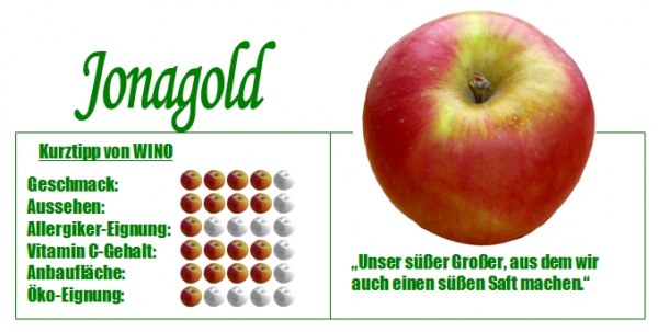 Sonstiges: Gemeinsam mit seinen Mutanten (z.B. Jonagored) die wichtigste Sorte in Mitteleuropa; für Babykost geeignet (wenig Säure)