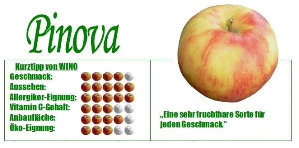 Herkunft: Pinova wurde aus einer Kreuzung von „Clivia“ und „Golden Delicious“ in Dresden/Pillnitz gezüchtet.